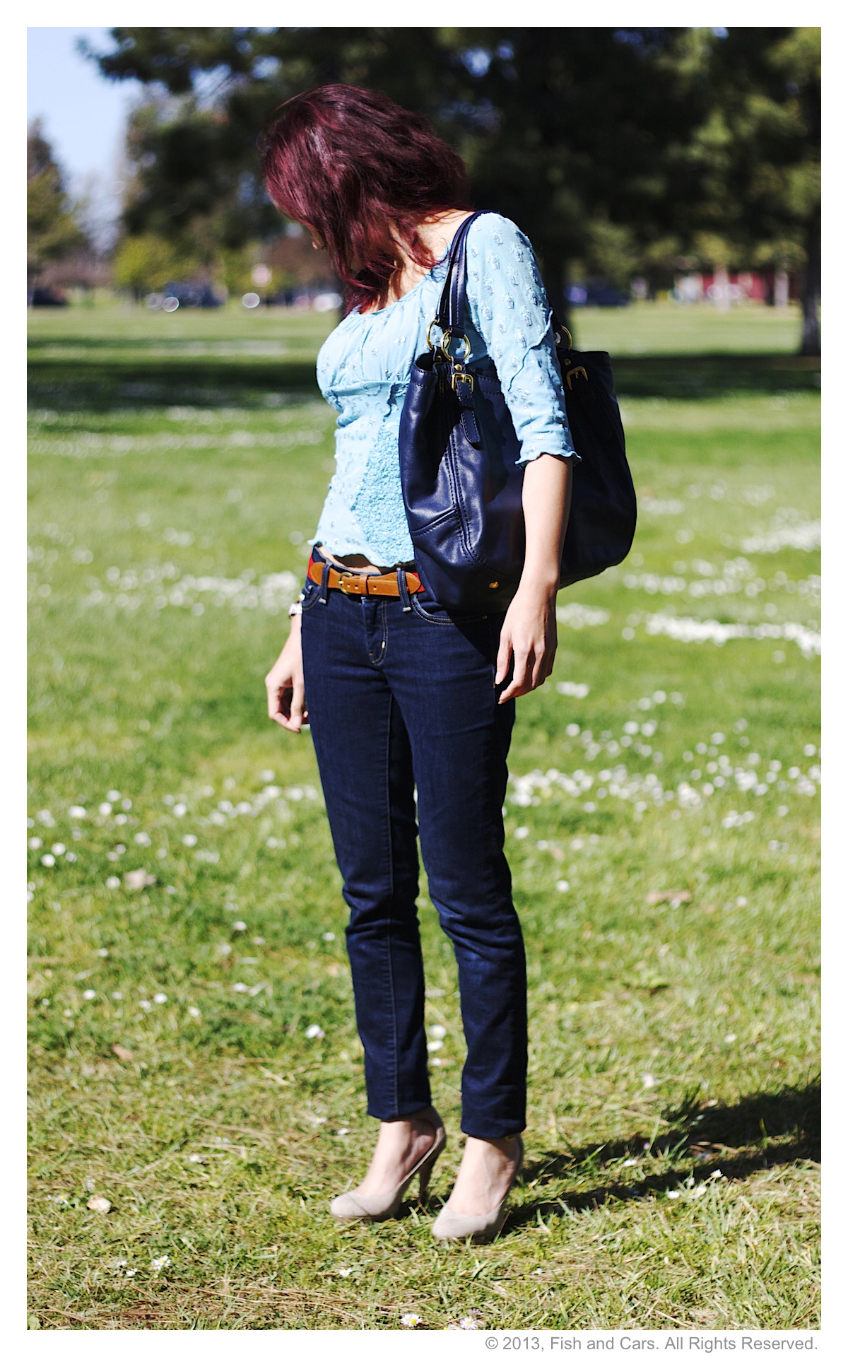 Even with a little wind today, the sun arises just to take a peek at every smile. I am excited to be wearing some of my favorite pieces today. I treasure the dreamy top full of stars by Ann Ferriday, which makes me feel happy and confident without fail every single time! The denim by Kate Spade is comfortable and hugs my body perfectly.